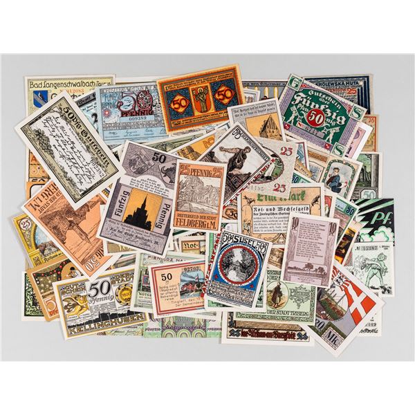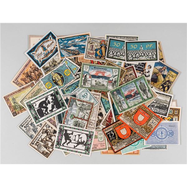 Large lot of 75 pieces of notgeld from Weimar Republic. From towns and villages like Nordhausen, Hamburg, Rinteln, Silberberg, Triberg, Kellinghusen,