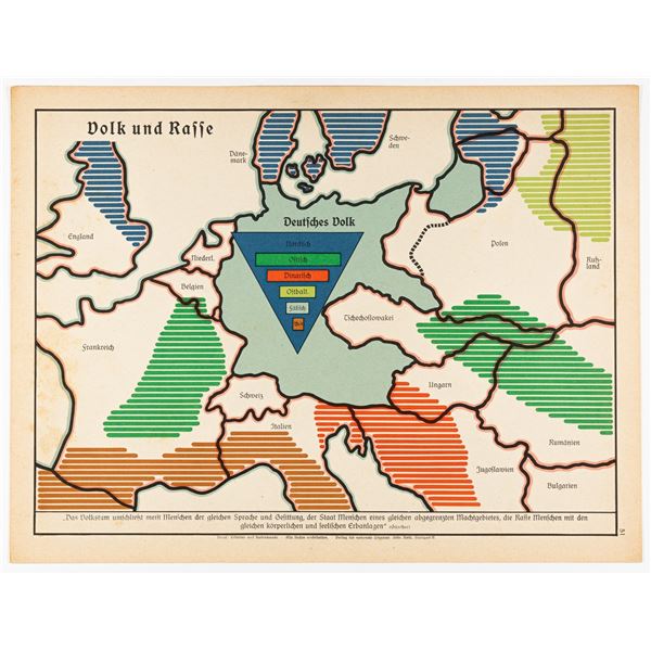 GERMAN WWII TEACHING POSTER German teaching poster 'Volk und Rasse', a map chart depicting the composition of the people of Europe. From: Er...