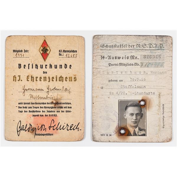 WAFFEN-SS ID & HITLER YOUTH HONOR BADGE CERTIFICATE273 - WAFFEN-SS ID & HITLER YOUTH HONOR BADGE CERTIFICATE