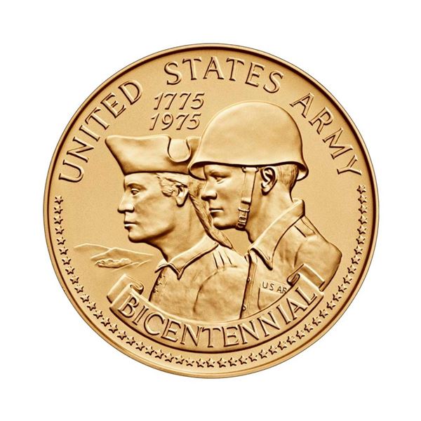 US ARMY BICENTENNIAL BRONZE MEDAL United States Army Bicentennial Bronze Medal. 3 inch diameter. The obverse design depicts a soldier of the 1770...