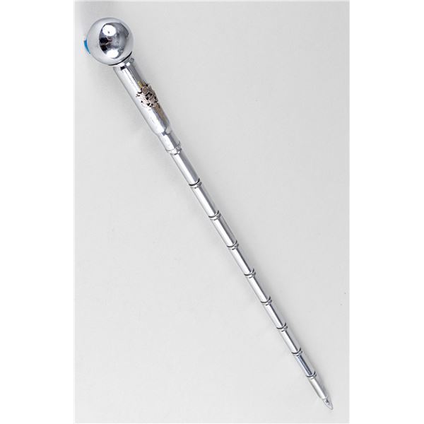 Field made chrome swagger stick made from spent bullet casings with a round chrome ball at top, attached to the upper part of the swagger stick is an