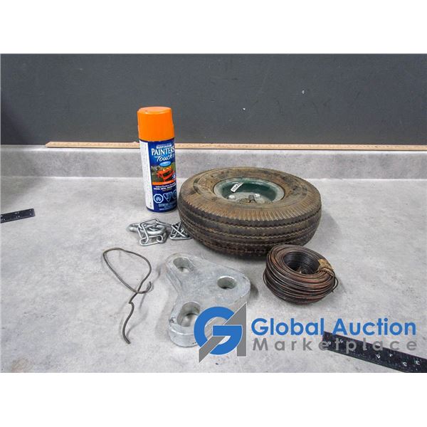 4.10/3.50-4 Tire, Wire, Paint Can, etc
