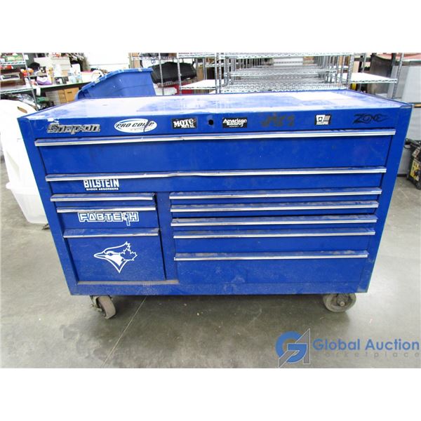 **Large Blue Snap-On 10-Drawer Base Cabinet on Wheels