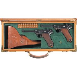 Two Original DWM Model 1900 American Eagle U.S. Army Test Lugers with Original 1906 Dated Leather Ho