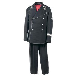 1) SS-style party armband, red velvet construction, 5 1/4 inches wide, with black cloth borders, black-on-white printed swa
