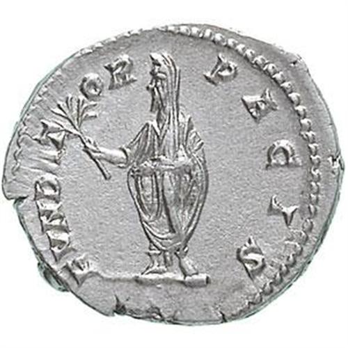 Roman Empire Coins. Septimius Severus (193-211). Denarius. D/ SEVERVS PIVS AVG. Testa laureata a destra. R/ FVNDATOR PACIS. Settimio velato, stante a sinistra, tiene un ramoscello d'olivo. RIC 265. gr. 3.35 AG. SPL.