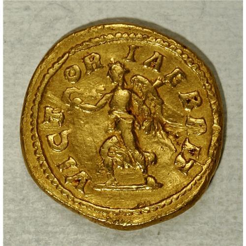 <B>Septimius Severus.</B></I> A.D. 193-211. AV aureus (20 mm, 7.03 g). Rome, A.D. 210. Laureate head right / Victory advancing left, holding wreath and palm. RIC -, but cf. 334 with obverse legend SEVERVS PIVS AVG BRIT; BMC -; Cohen -. <B>Near VF,</B></I> ex jewelry, reverse scrape and several scratches. An unpublished mule.<BR><BR><b>Shipping:</b> Coin/Currency (<a target="_blank" href="http://www.heritageauctions.com/common/shipping.php">view shipping information</a>)