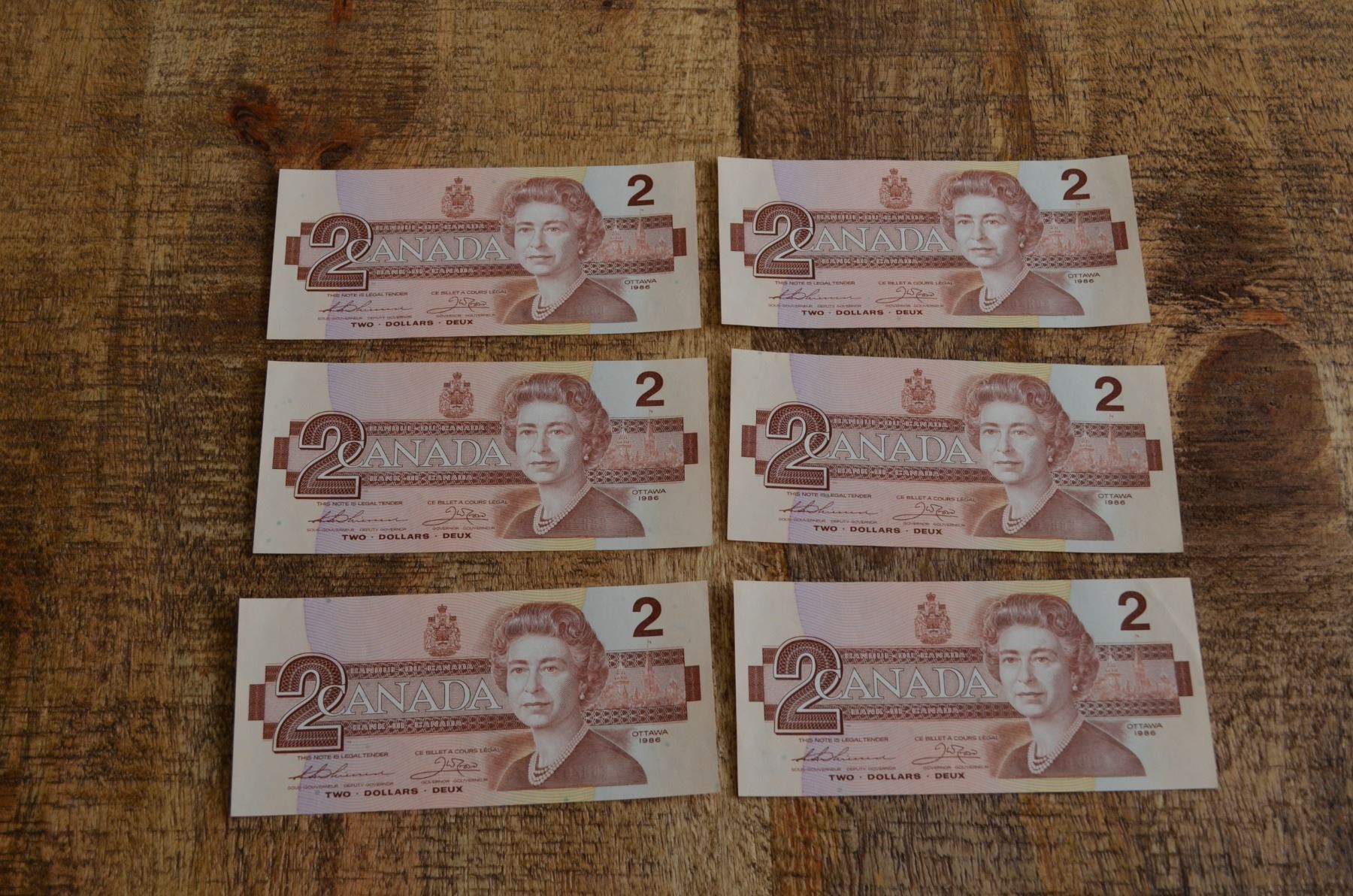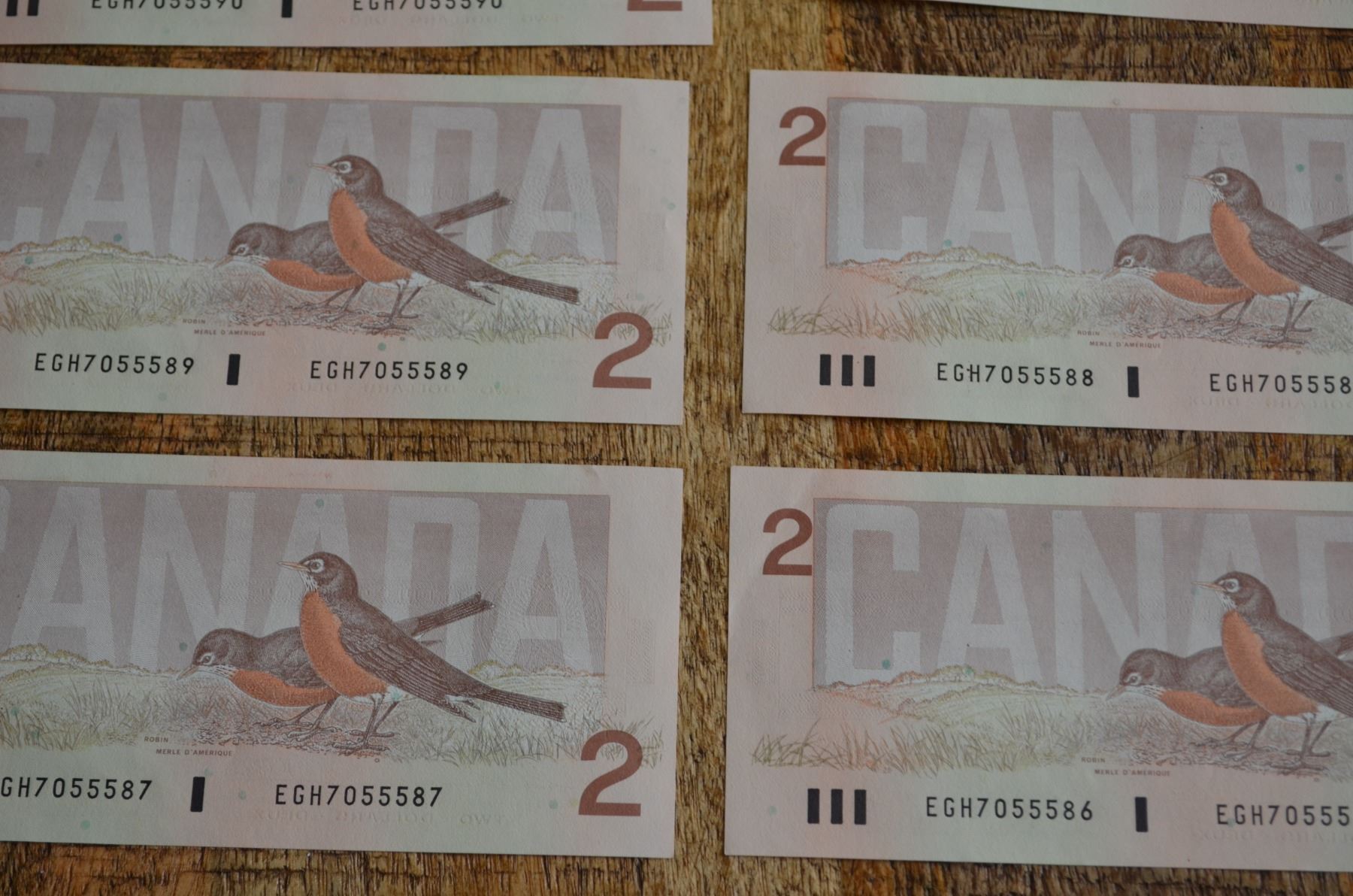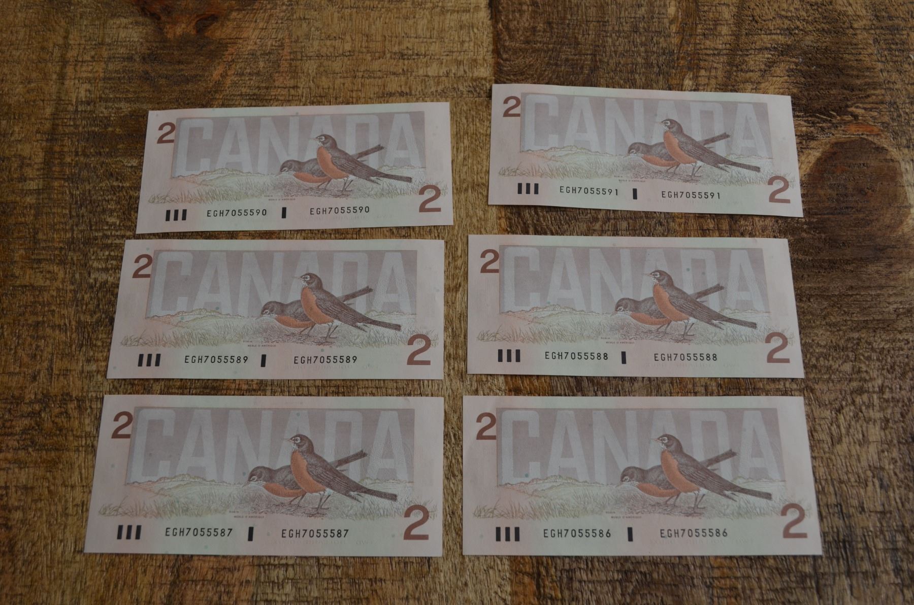Six bills in total, serial numbers from 55586 to 55591