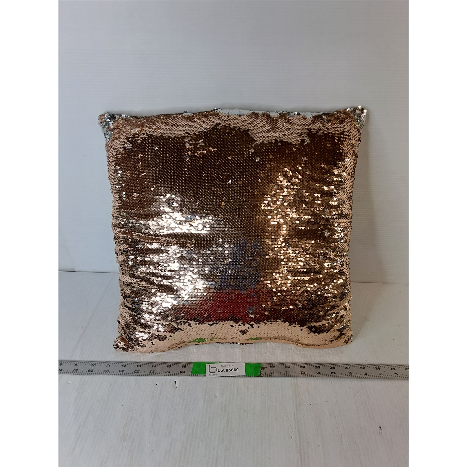 Sequined Rose Gold Flip Design Throw Pillow 16"