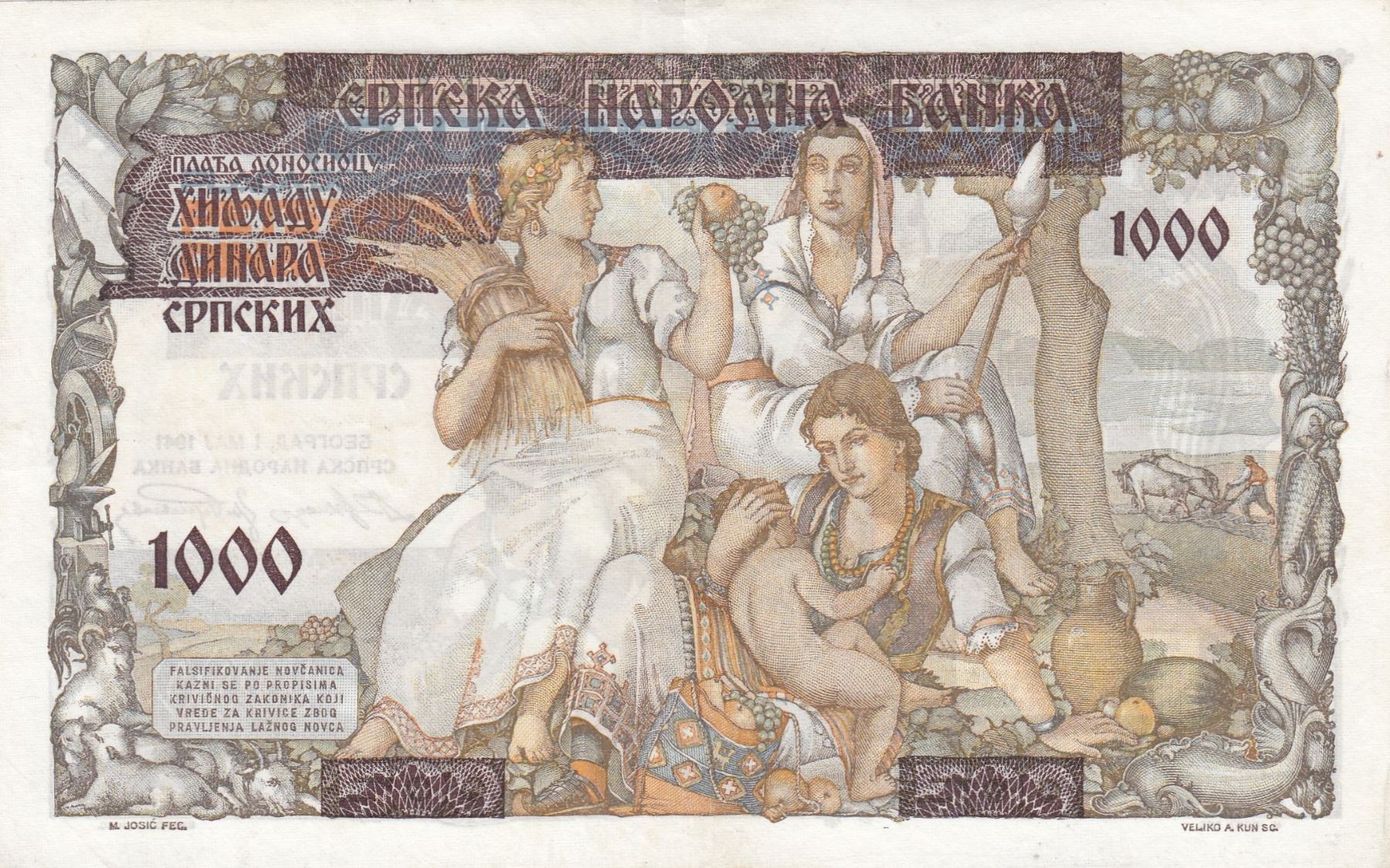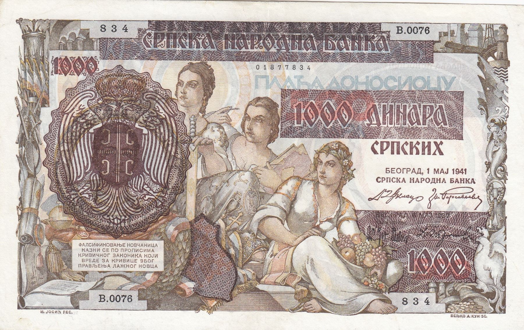 Serbia, 1.000 Dinare, 1941, AUNC, p24br/serial number: 834/B.0076
