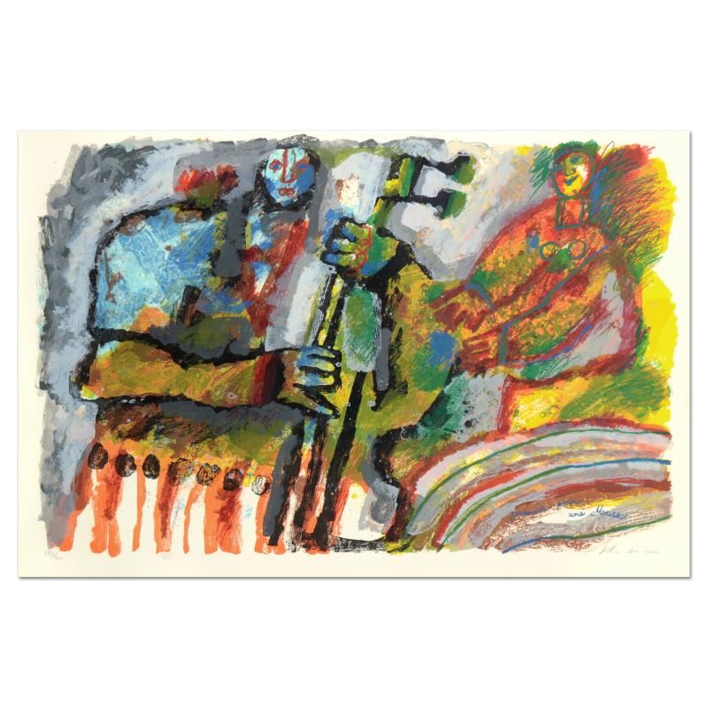 "Serenade Pour une Mouse" is a limited edition lithograph on paper by Theo Tobiasse (1927-2012), numbered and hand signed by the artist. Includes Letter of Authenticity. Measures approx. 35.5" x 23.5" (border), 33" x 22" (image).