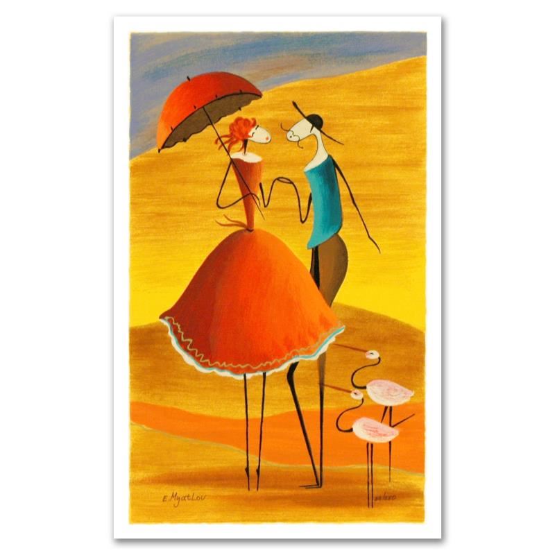 "Serenade" is a limited edition serigraph on paper by Ester Myatlov, numbered and hand signed by the artist! Includes Certificate of Authenticity! Measures approx. 9" x 14" (with border), 8 x 13 (image).
