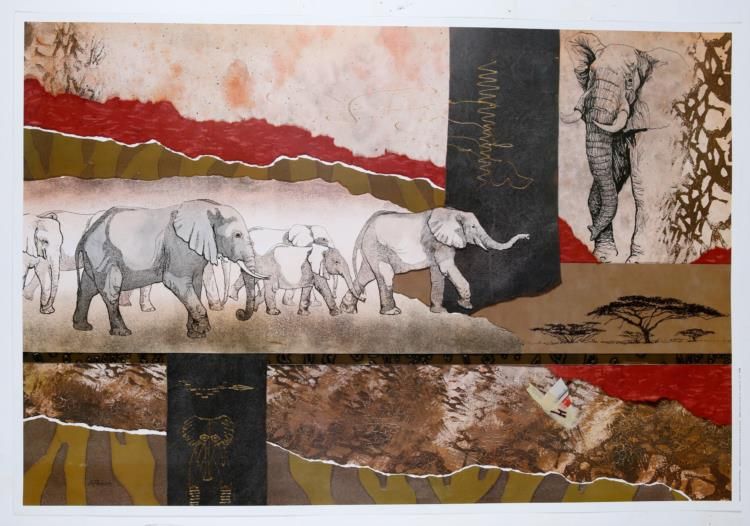 Offered for sale we have Serengeti Elephants by Joseph Poirier Fine Art Print that measures 25" x 37".