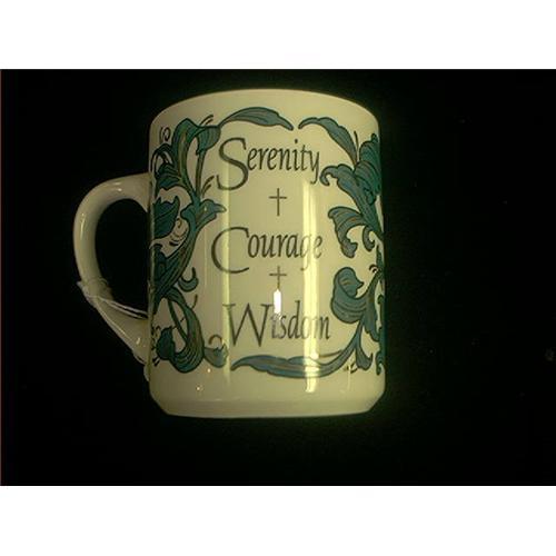 Serenity Cup Signed "C' Abbey Press. It is 4" H, has gold lettering and detailed green and gold leaves. It has the prayer God give me the Serenity to accept the things I cannot change, the things I can, and Wisdom to know the difference. It says "C" Abbey Press St Meinrad, Indiana. This is one beautiful cup and I love the verse. I pray a lot and have several verses that I use in my prayers everyday. Hope you do to. Hope you like it. Enjoy