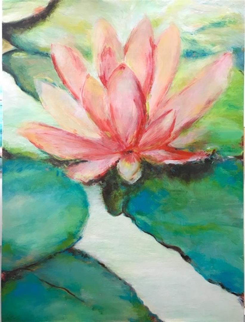 Acrylic / Oil pastel on stretched gallery canvas by Adonna. 30" x 40". Adorn your wall with a sense of peace and calmness, inspired by the gardens of Monet.