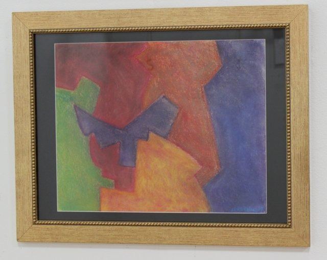 Print, possibly pastel. Signed lower right. Not taken out of frame. Approx. 15 1/2" H x 19 1/2" W sight, 21 1/2" H x 27 1/2" W framed. No guarantee of authenticity or provenance.