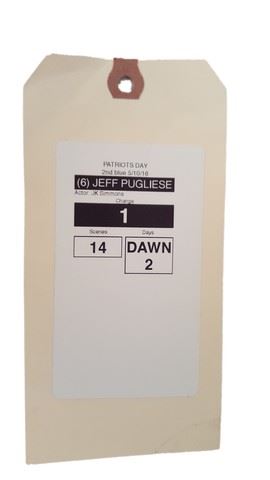 Sergeant Jeffrey Pugliese (J.K. Simmons) screen worn, navy "Brooks Brothers" terry cloth bathrobe with matching belt(s), charcoal grey "Impressions" slippers(11-12), and a white "Banana Republic" v-neck t-shirt(M). Wardrobe tag included!