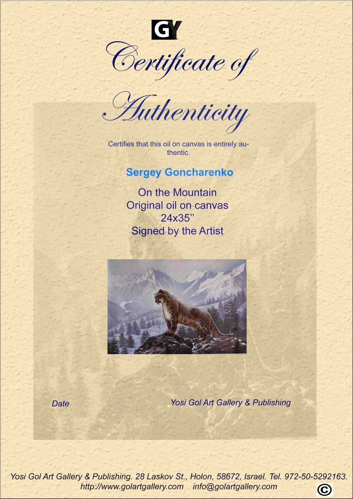 Artist: Sergey Goncharenko. Medium: Original Oil on Canvas. Title: On the Mountain. Size (Unframed): 24" x 35". Certificate of Authenticity: From the publisher. Reference# 10183.