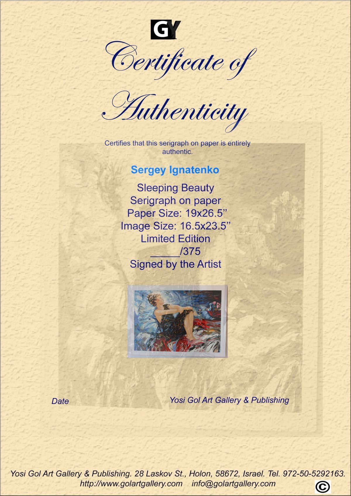 Artist: Sergey Ignatenko. Medium: Original Serigraph on Paper. Title: Sleeping Beauty. Size (Unframed): 19" x 26.5". Limited Edition: Edition of 375. Certificate of Authenticity: From the publisher.
