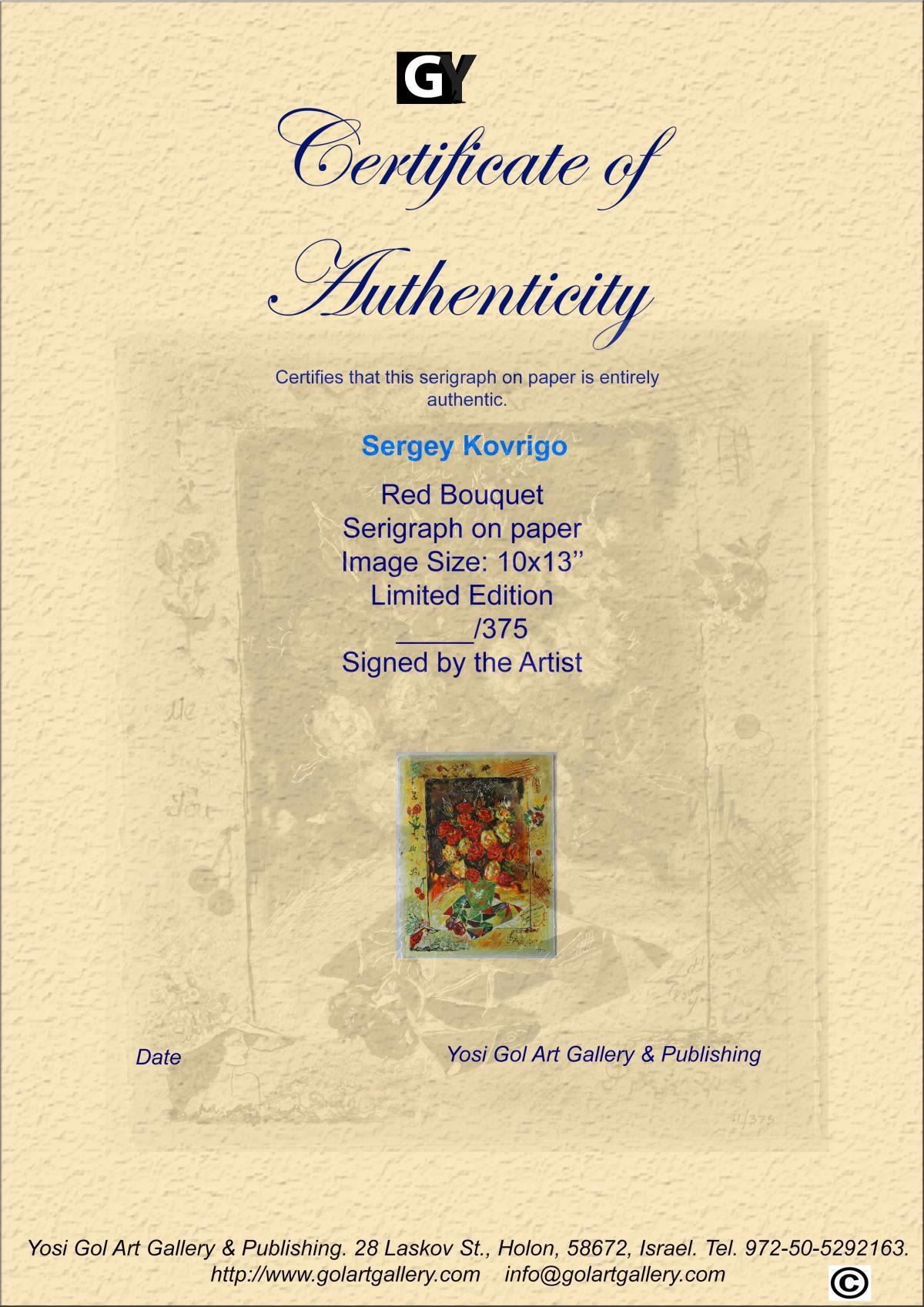 Artist: Sergey Kovrigo. Medium: Original Serigraph on Paper. Title: Red Bouquet. Size (Unframed): 13" x 10". Limited Edition: Edition of 375. Certificate of Authenticity: From the publisher.