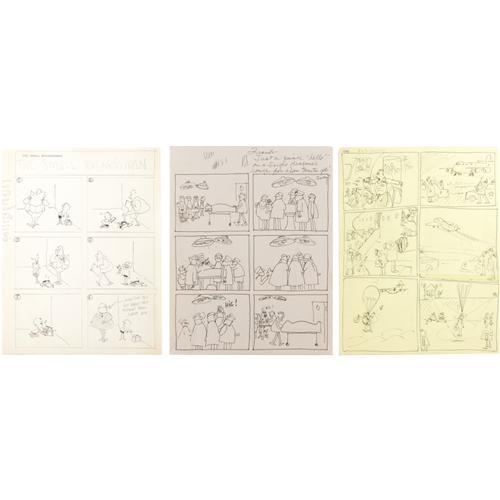 <B>Sergio Aragones - Mad #151 Gag Preliminary Sketch Original Art, Group of 3 (EC, 1972).</B></I> The fastest pen in the West, Sergio Aragones, whipped up these three hilarious gag roughs for <B>Mad</B></I>. Two were used in issue #151 ("The Small Businessman" and "In The Operating Room"). On a side-note, Don Martin did the final art for the "In the Operating Room" feature. The final preliminary in this lot, titled "The Sky-Jacker," was done for an unidentified project or issue. The overall size of each of these preliminary pages measures approximately 8.5" x 11", and the art is in Very Good condition.<BR><BR><b>Shipping:</b> Flat Material, Small (<a target="_blank" href="http://www.heritageauctions.com/common/shipping.php">view shipping information</a>)