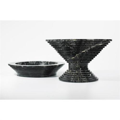 Sergio Asti<BR>Portofrutta model 89-44 and Portafiori model 89-45<BR>Gavina for Knoll International<BR>Italy, 1971<BR>grigio bardiglio marble, verde alpi marble<BR>16 dia x 10 h inches<BR>Portafiori measures: 15.75 dia x 3.5 h inches<BR>Exhibited: <BR>Piazza del Duomo, 1983, Milan<BR><BR>Condition of the item is not included in this description. Condition reports are available from Wright upon request. Wright strongly recommends that you review a condition report for each item on which you plan to bid.