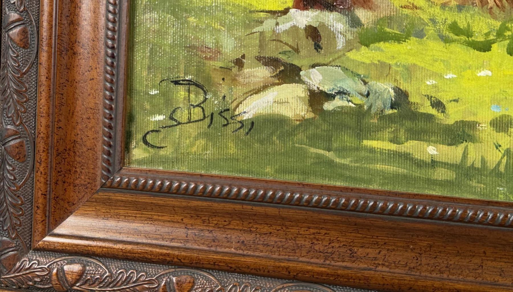 15 1/2" by 19 1/2" unframed. 21 1/2" by 25 1/2" framed. Has a scuff and a small puncture that can be seen when tilted in the light as shown. Sergio Cirno Bissi (1902 - 1987) was active/lived in Italy. Sergio Bissi is known for Painting.