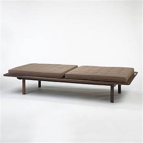 Sergio Rodrigues Rocio bench Brazil, c. 1965 jacaranda, silk 75"w x 35.5"d x 13"h