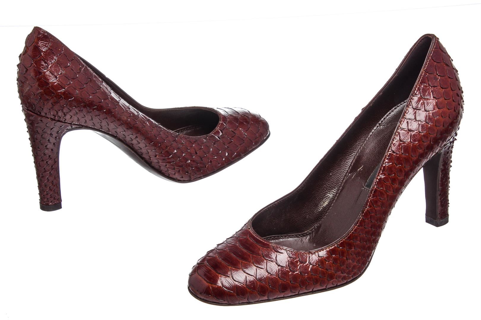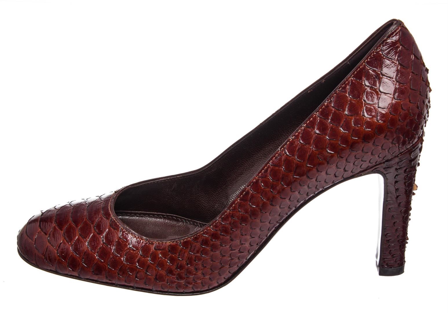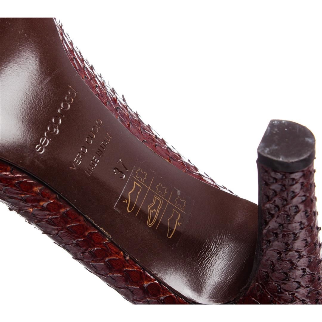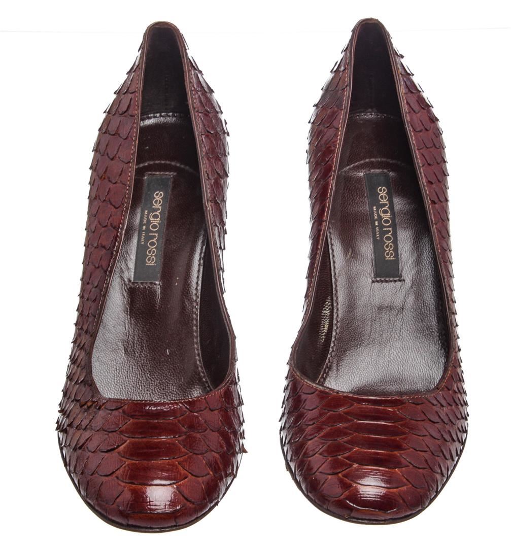Sergio Rossi dark brown snakeskin almond toe pumps, 3.5"x0.5" heel, designer size 37.