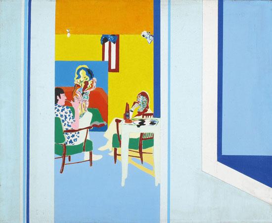 Sergio Segre, Israeli painting, B. 1932, Figures in a Room, 1969, Oil on canvas, 50x61cm, Signed and dated on the reverse., , , ,
