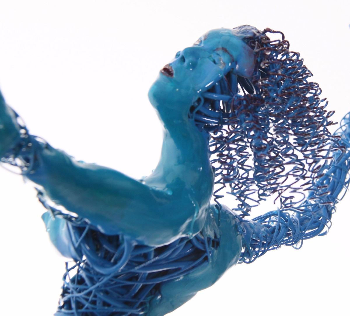 Sergio Vega (XX), titled "Water" one of a kind signed sculpture, mixed media of wire, cement composite and acrylic. Signature glows in the dark. Comes with Certificate of Authenticity (COA) from the artist.