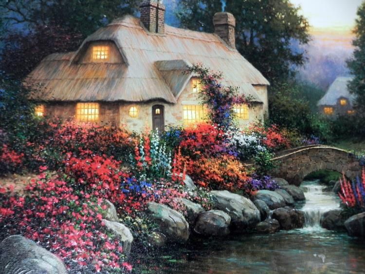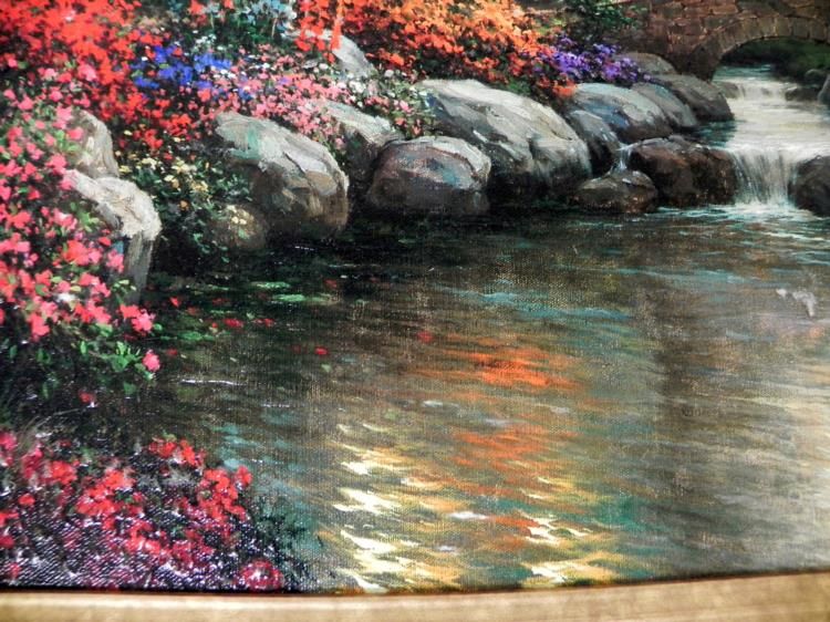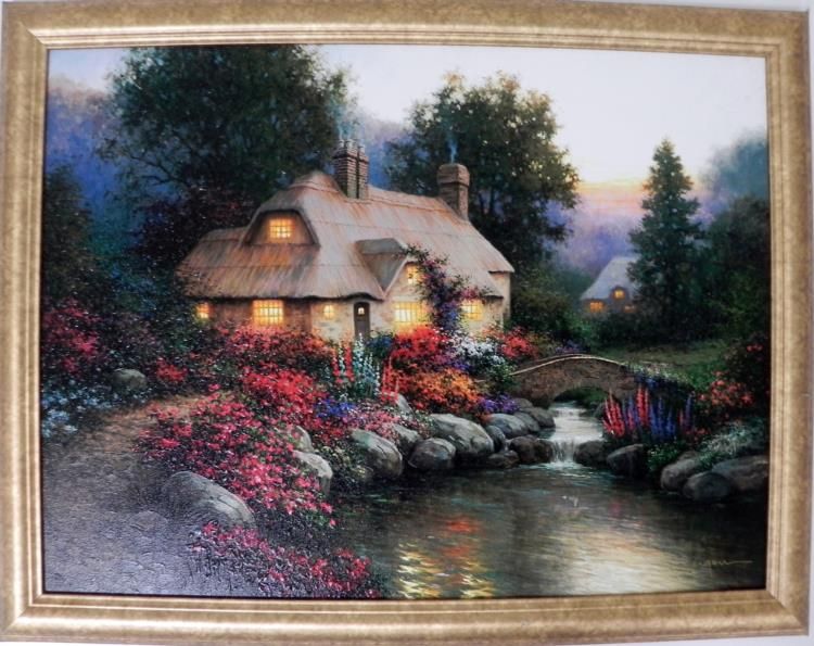 Artist: SergonTitle: Stonebridge CottageMedium: Original Giclee, Hand Embellished - Somerset CanvasDate: 2002Edition: Artists ProofFrame size: 23 1/2" x 30"Publisher: Basil R. CollierCertificate of Authenticity: IncludedCondition: Very good**Original price of this Giclee is $700. Due to some slight damage to the canvas and frame, the price has been marked down.BiographySergon, born in Manila, is noted for his paintings of brilliant still life and lush gardens. His paintings are realistic in form and detail, and are on permanent display in various private and government offices including the Philippine Embassy in Washington, D.C. Collectors include Uri Geller and Imelda Marcos, who commissioned Sergon murals for the Executive Palice in Manila.