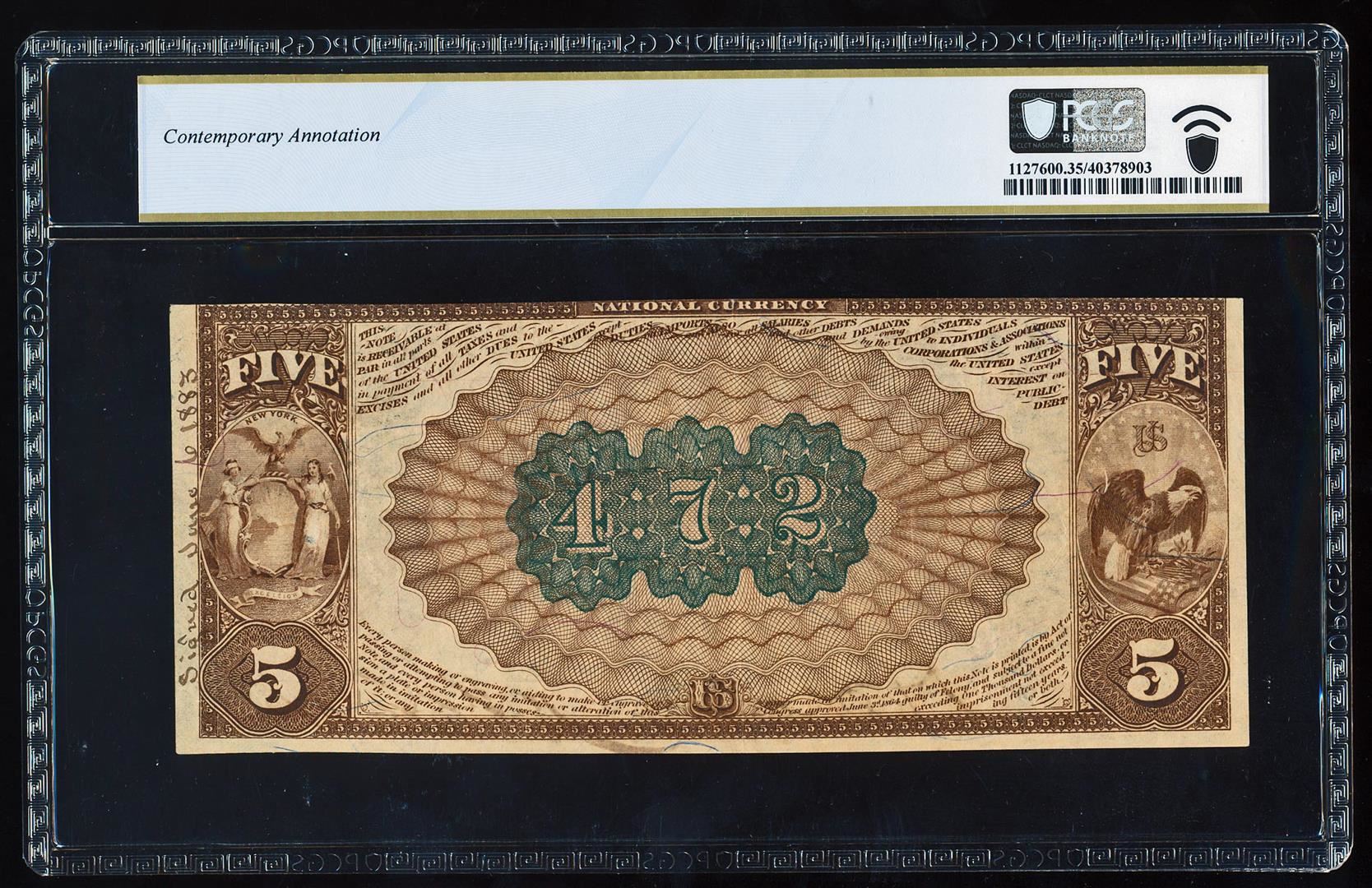 Serial # 1 - 1882BB $5 Deposit, NY CH# 472 National Note PCGS Choice Very Fine 35