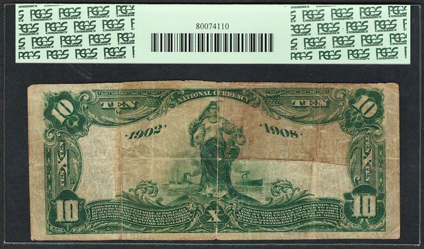 Serial # 1 1902 DB $10 Washington, PA CH# 9901 National Currency Note PCGS Very Good 10