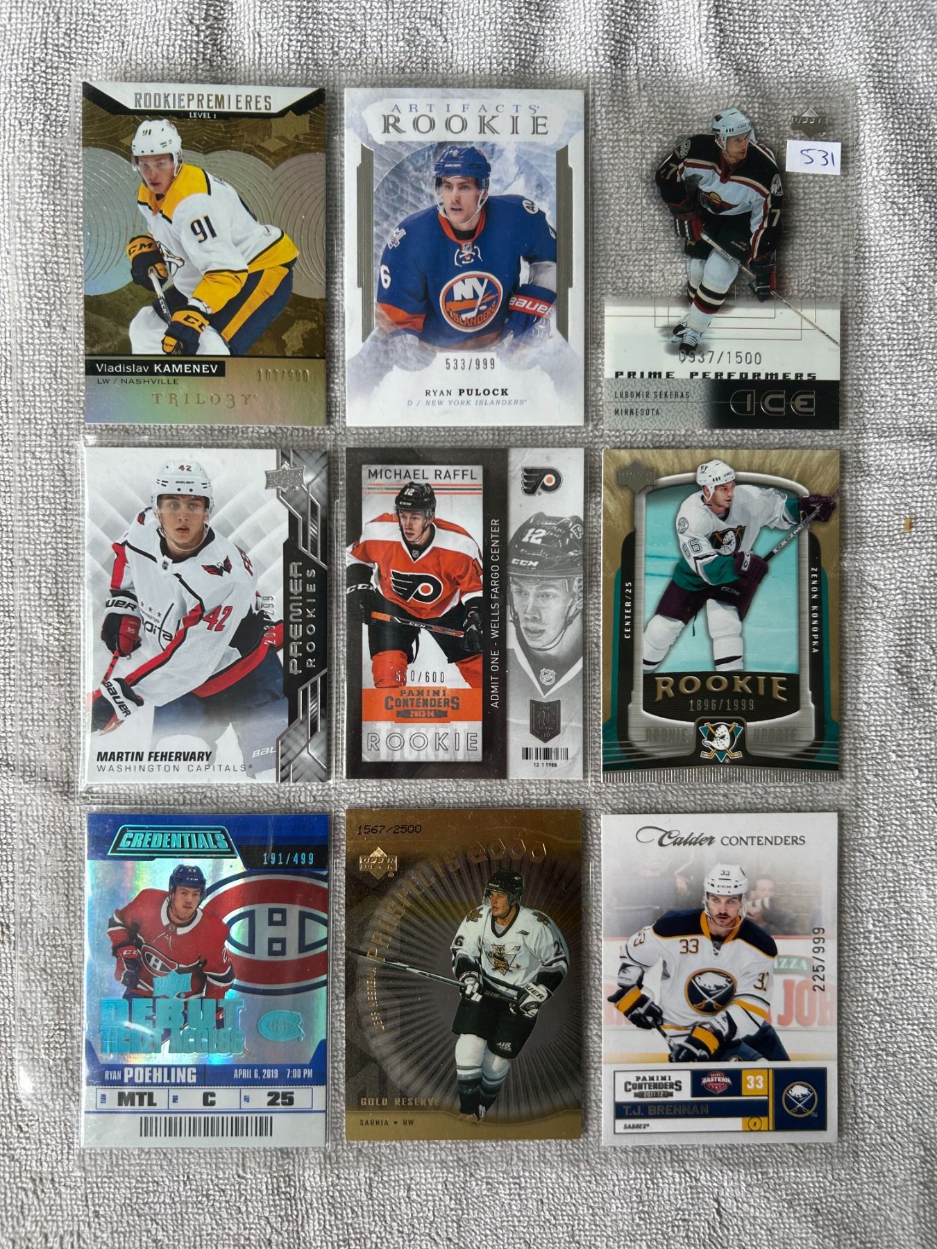 Serial Numbered Rookie Cards - 1 Sheet (9 Cards)