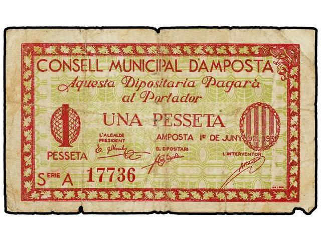 Serie 2 billetes 50 Cèntims y 1 Pesseta. 1 Juny 1937. C.M. d´AMPOSTA. (La de 1 Pesseta, roturas). AT-155, 156; T-211, 212. MBC- y MBC+.