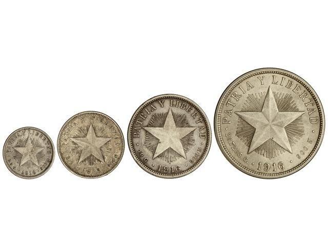 Serie 4 monedas 10, 20, 40 Centavos y 1 Peso. - 1916. - AR. A EXAMINAR. KM-A12, 13.2, 14.3, 15.2.