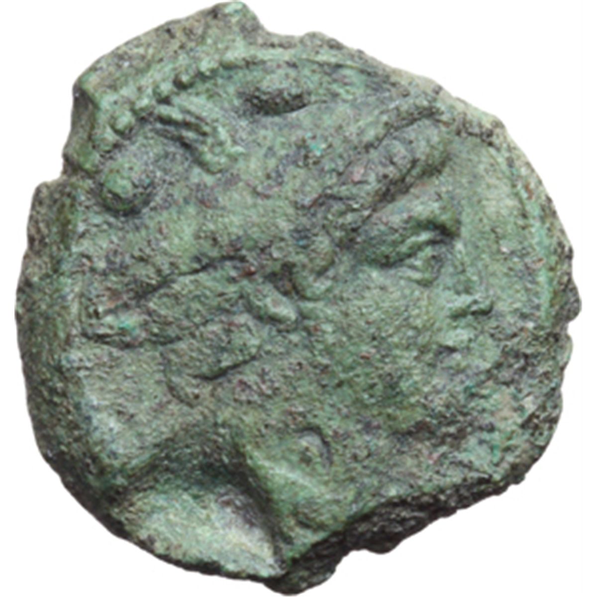 Repubblica Romana. Serie 'Vittoria'. Sestante, 211-208 a.C. Italia centrale. D/ Testa di Mercurio a destra. Sopra, due globetti. R/ Prua a destra. Sopra, Vittoria con corona,che vola a destra/ ROMA. Sotto, due globetti. Cr. 61/6. AE. mm. 19.50 Di grande freschezza. Patina verde smeraldo, intatta. Bel BB+.