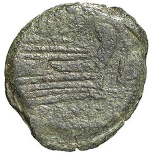 Serie anonima. Asse, 157-156 a.C. D/ Testa laureata di Giano. Sopra, I. R/ Prua a destra. Davanti, I. Sotto, ROMA. Cr. 198B / 1b. gr. 21.89 R. AE. Bel BB. Meno di 4 esemplari nel Medagliere di Parigi.