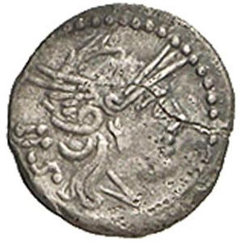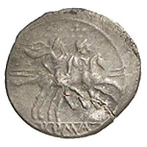 Serie anonima. Sesterzio, dal 211 a.C. D/ Testa di Roma a destra. Dietro, IIS. R/ I Dioscuri al galoppo a destra. Sotto, ROMA. Cr. 44/7. gr. 1.02 R. AG. Infrazione radiale, altrimenti BB+.