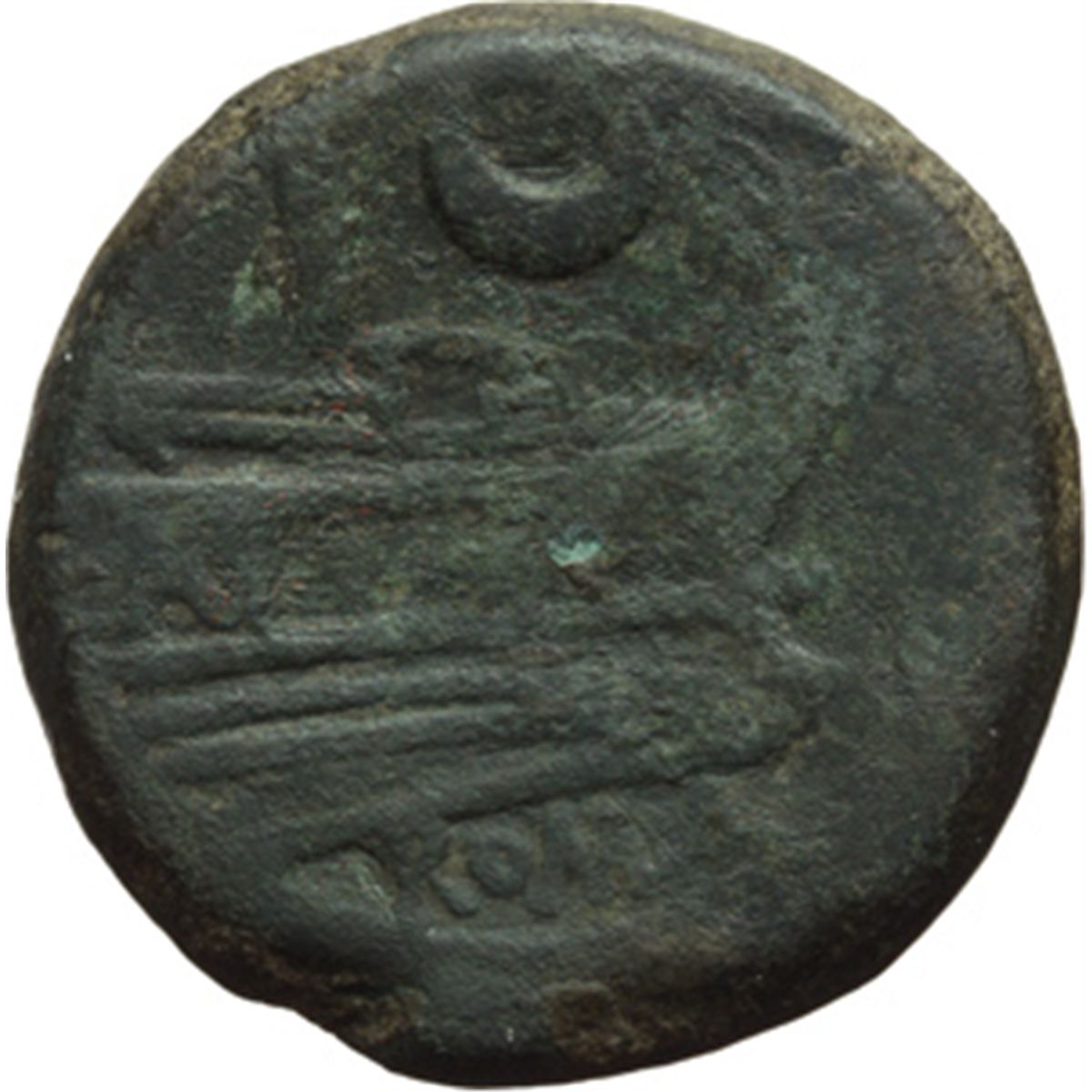 Repubblica Romana. Serie 'crescente'. Asse, 207 a.C. D/ Testa laureata di Giano. Sopra, I. R/ Prua a destra. Sopra, I e crescente. Sotto, ROMA. Cr. 57/3. AE. g. 38.84 BB.
