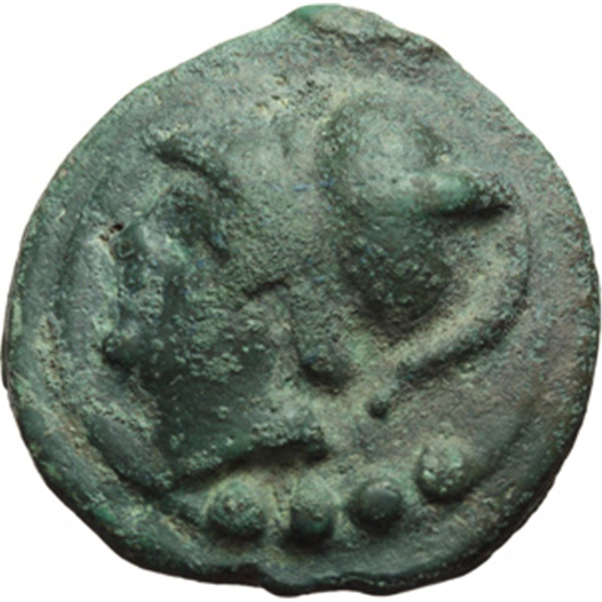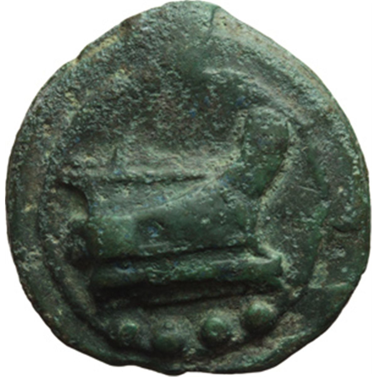 Repubblica Romana. Serie librale. Triente, 225-217 a.C. D/ Testa di Minerva a sinistra. Sotto, quattro globetti. R/ Prua a destra. Sotto, quattro globetti. Cr.35/3. AE. g. 92.38 mm. 47.00 Di qualitv† eccellente. Patina verde smeraldo. qSPL.