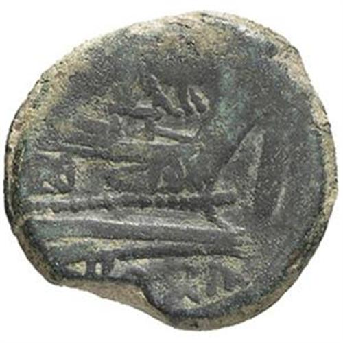 Serie 'lupa e gemelli'. Asse, 169-158 a.C. D/ Testa laureata di Giano. Sopra, I. R/ Prua a destra. Sopra, la lupa che allatta i gemelli. Davanti, I. Sotto, ROMA. Cr. 183/1. gr. 22.59 AE. BB.