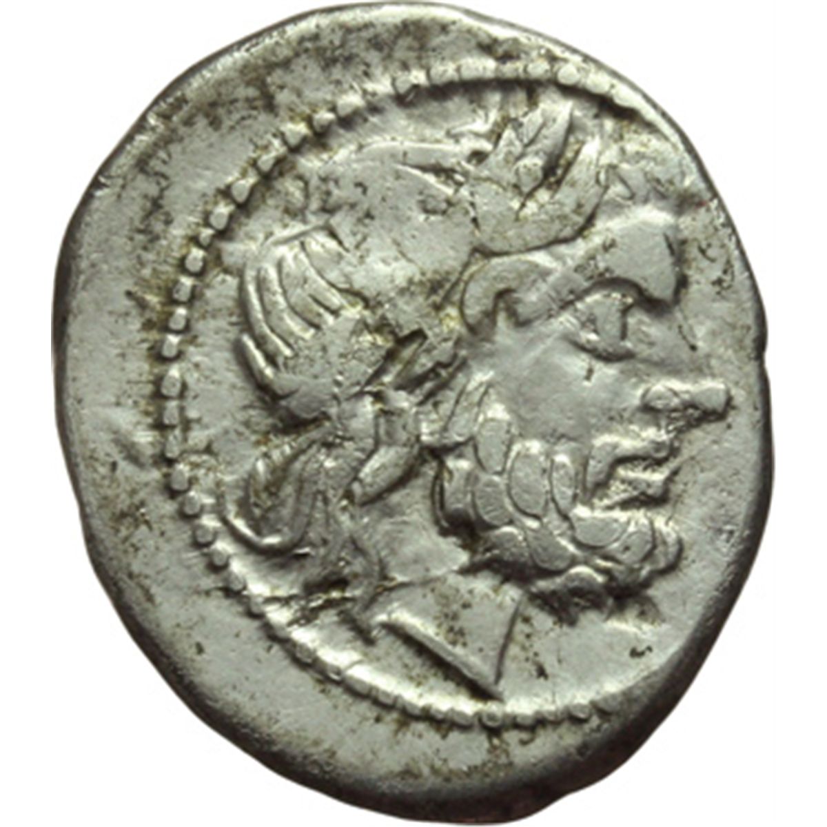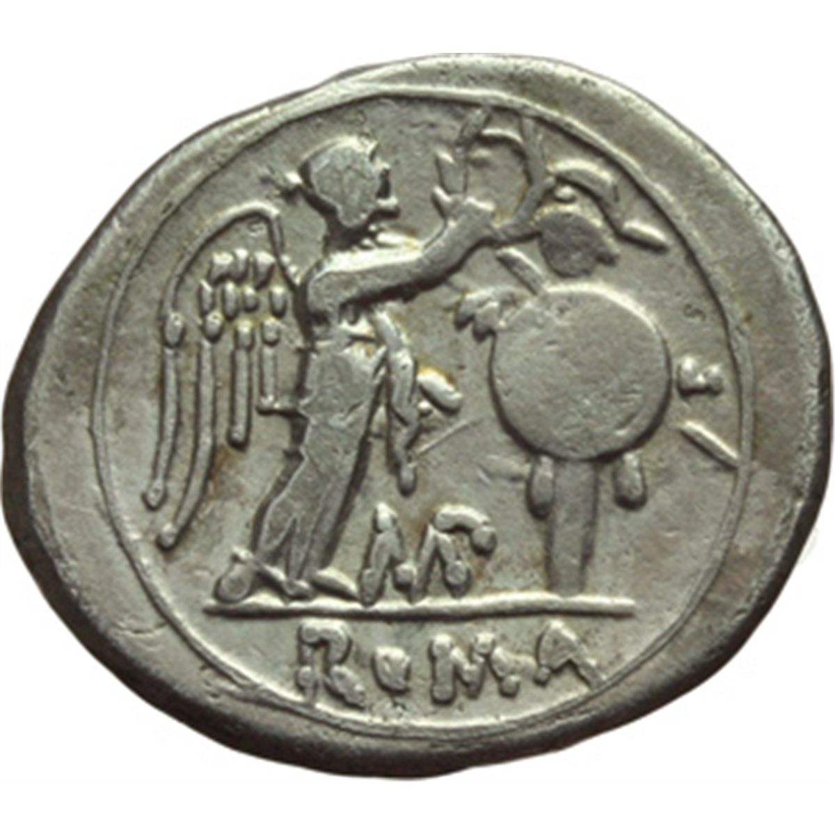 Repubblica Romana. Serie monogramma MP. Vittoriato, 211-208 a.C. D/ Testa laureata di Jupiter a destra. R/ Vittoria stante a destra incorona un trofeo. Nel campo, monogramma MP. In esergo: ROMA. Cr.93/1a. AG. g. 2.93 mm. 19.50 R. Raro. Metallo lucente e grande modulo. BB.