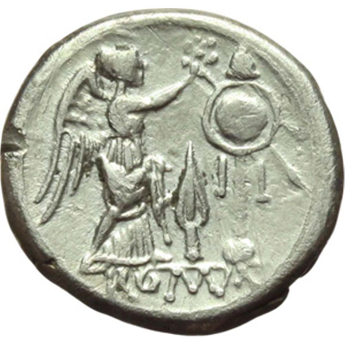 Repubblica Romana. Serie 'punta di lancia'. Vittoriato, 211-210 a.C. D/ Testa laureata di Jupiter a destra. R/ Vittoria stante a destra incorona un trofeo. Nel campo, punta di lancia. In esergo: ROMA. Cr.83/1a. A. g. 3.07 mm. 17.00 Bel BB/BB+.