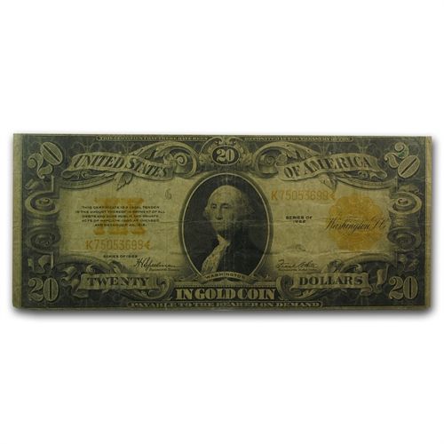 Series 1922 $20.00 Gold Certificate - Washington - (PCG **|**|** Series 1922 $20.00 Gold Certificate - Washington - (PCGS Fine 12) ; MSRP: $300