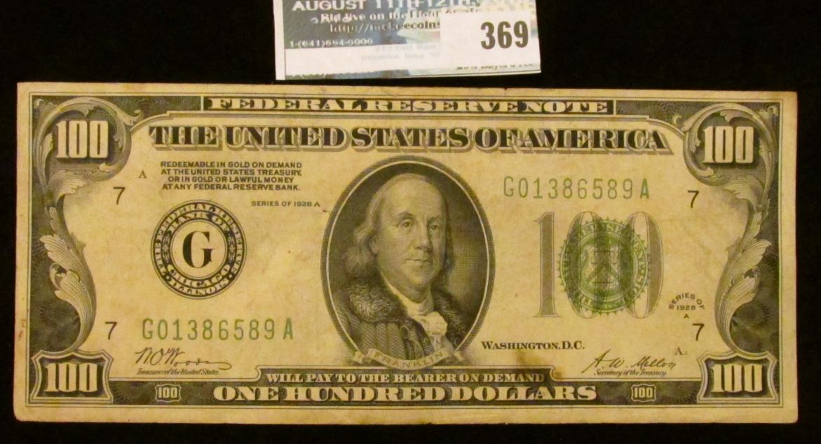 Series 1928 A $100 Federal Reserve Note "Redeemable in Gold on Demand…", Signed by Woods & Mellon, P