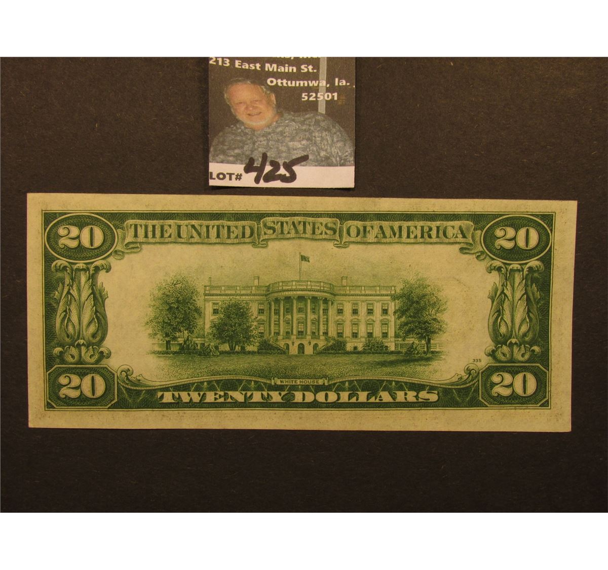 Series 1934 A $20 Federal Reserve Note, obverse Macro E28, reverse Macro 335, Near CU.