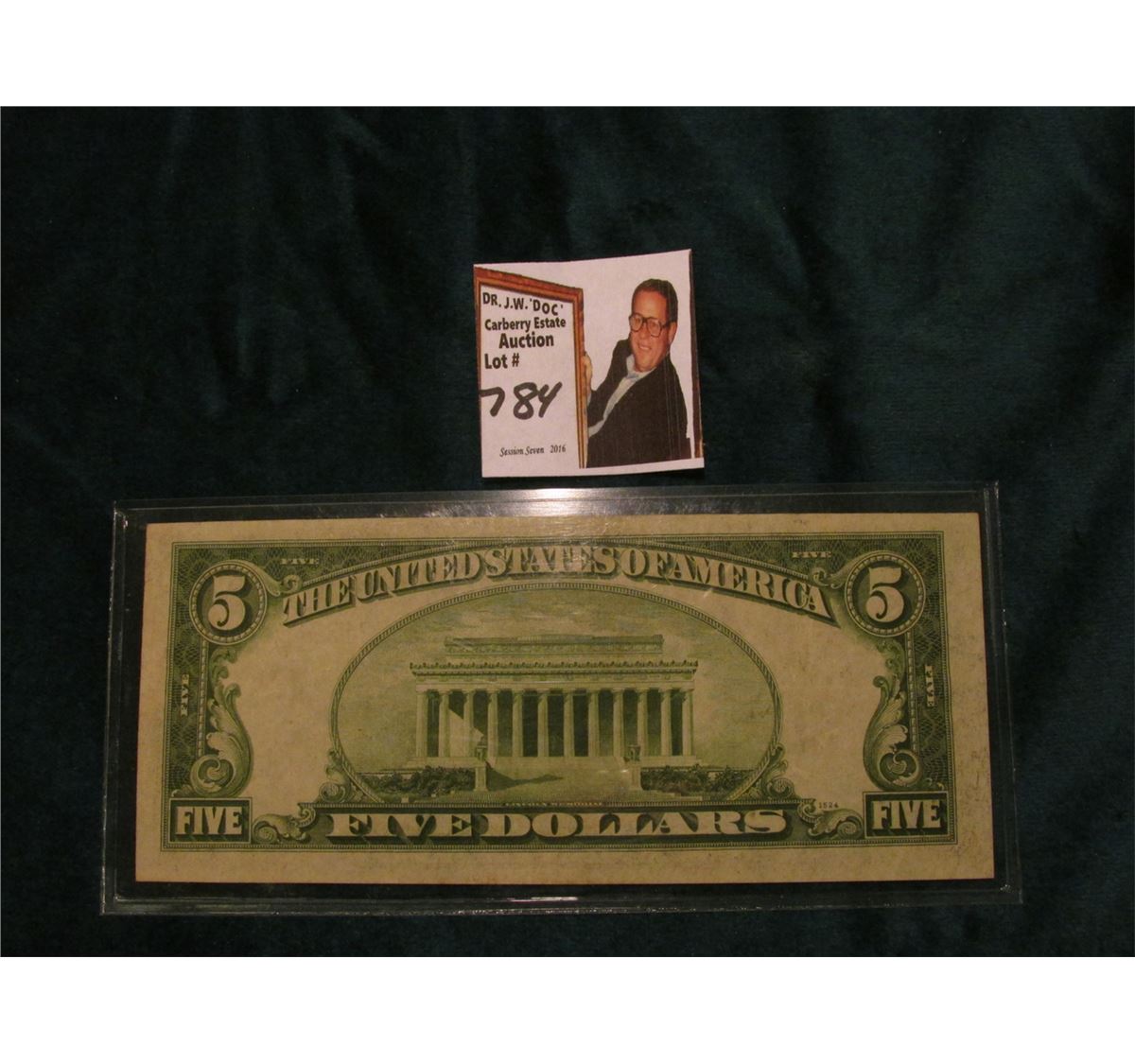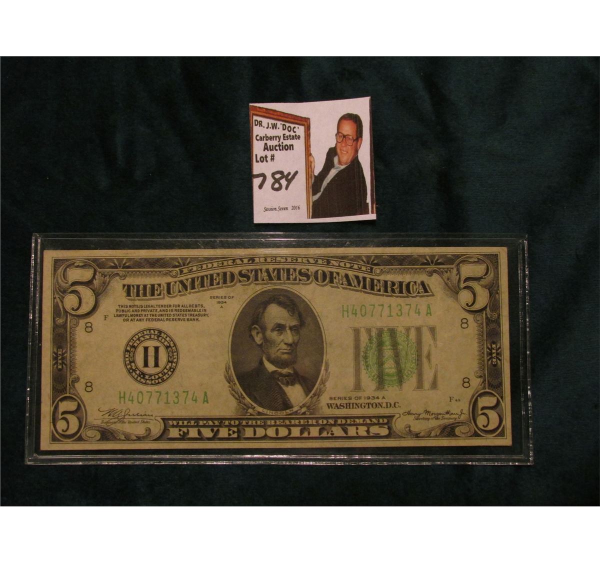 Series 1934A $5 Federal Reserve Note, Fine. Obv. Macro plate F49, rev. 1524.