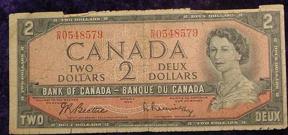 Series 1954 $2 Bank of Canada Note. AG-G.